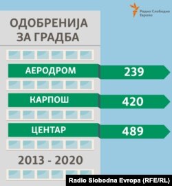 Радио Слободна Европа истражуваше колку во изминатите осум години за време на мандатот на различни градоначалници во општините Аеродром, Карпош и Центар биле издадени одобренија за градба, завршени објекти и станови од страна на деловни субјекти.
