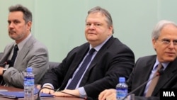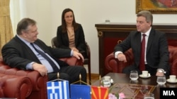 И македонскиот претседател Ѓорге Иванов во својот кабинет го прими гостинот од Грција. По средбата од кабинетот на претседателот соопштија дека македонскиот претседател на министерот Венизелос му порачал дека решение за отвореното прашање е можно само со стриктно придржување до рамката во која се води процесот во ОН, со почитување на постоечките резолуции на Советот за безбедност, Времената спогодба, меѓународното право и пресудата од Хаг“. Иванов додал дека навлегувањето во прашањата од сферата на идентитетот и човековото достоинство не е дел од рамката и не придонесува кон напорите за изнаоѓање на взаемно прифатливо решение.