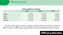 Според државната статистика, бројот на говеда од 2004 до 2014 се намалил од 255 на 242 илјади грла. Бројот на овци е преполовен, па од 1,4 милиони во 2004 минатата година имало околу 740 илјади.